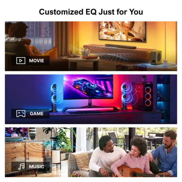 • Personalized Sound Experience: Elevate your audio with 3 EQ modes designed for music, movie, and game. Ultimea exclusive "BassMX" enriches the low frequencies, enabling adjustable bass for the enhanced bass effect. All modes are easily accessible with a touch of a button on the EQ settings.