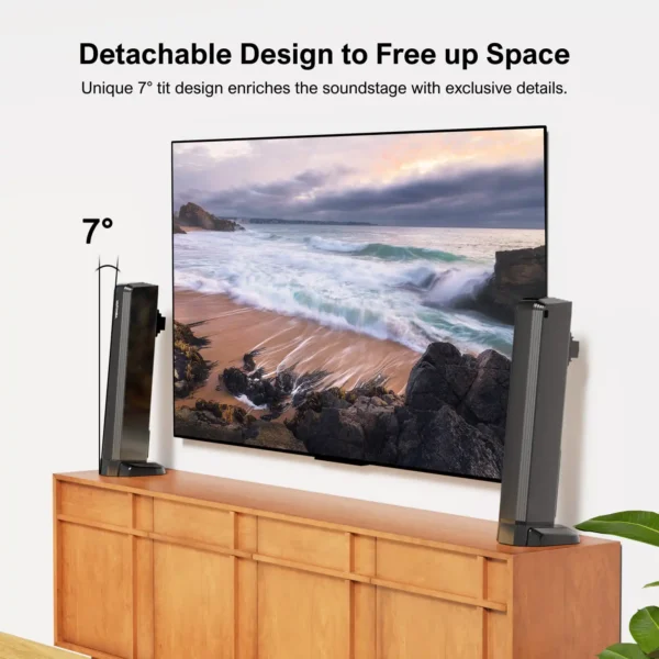 • Versatile and Space-Saving Shape: The soundbar's detachable design allows you to assemble it in a variety of styles to fit the layout and atmosphere of your room. The split design saves space while the unique 7° tilt design enriches the soundstage with exclusive details.